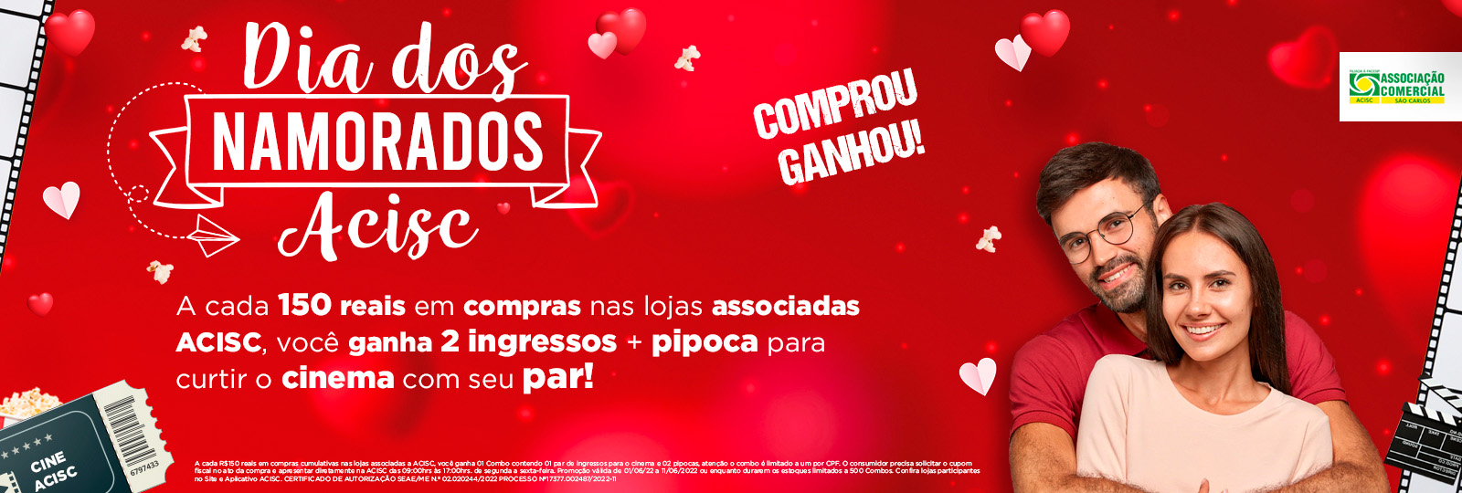 Pensando em tudo isso e, em alavancar as vendas no comércio de São Carlos, a Acisc lança a campanha “Dia dos Namorados Acisc”.
